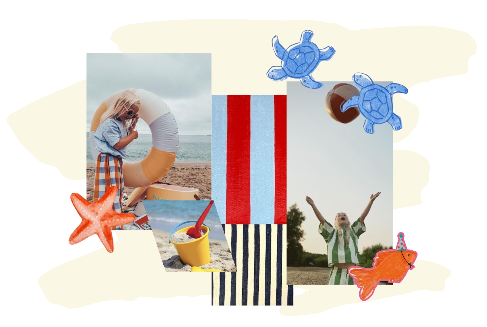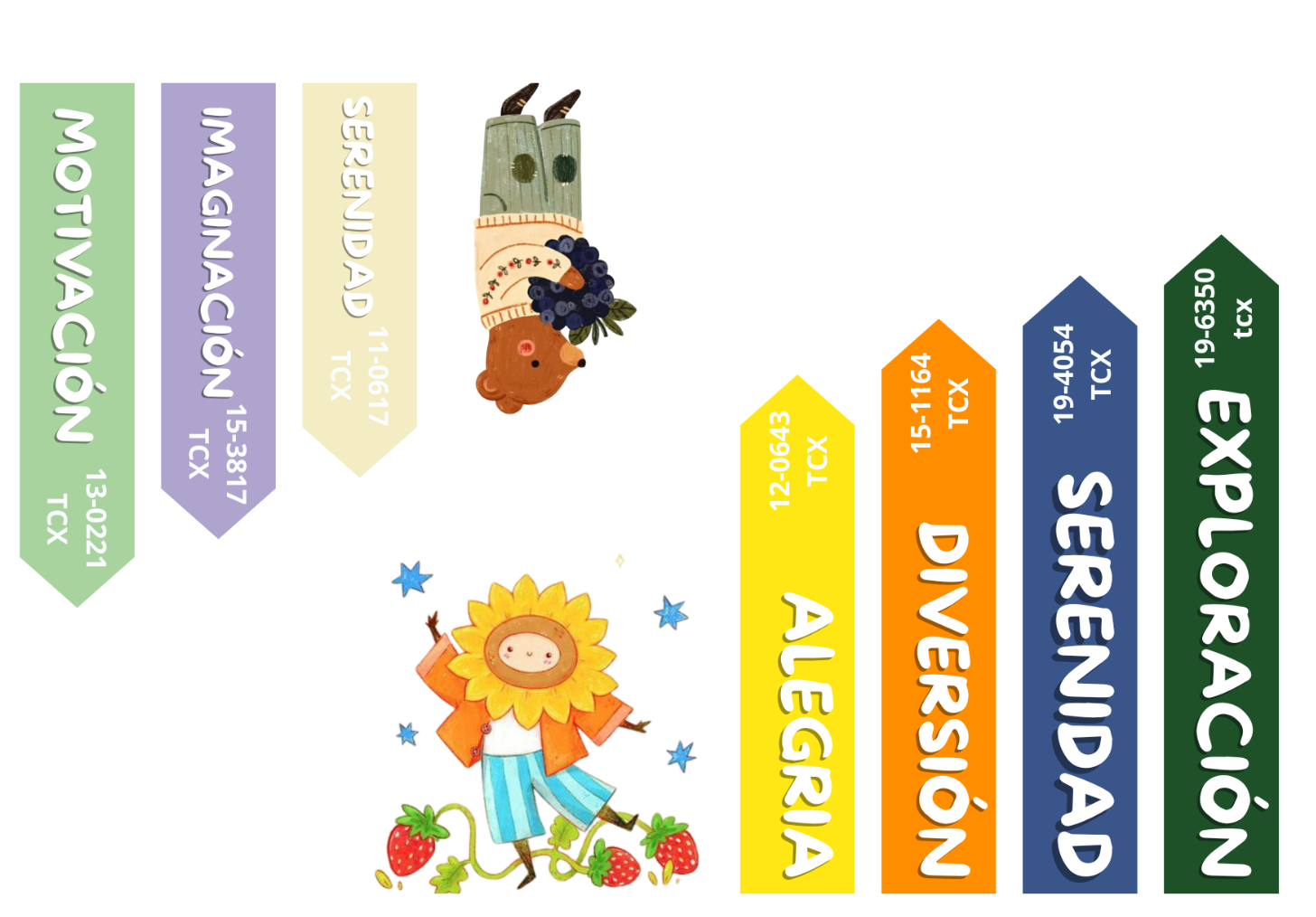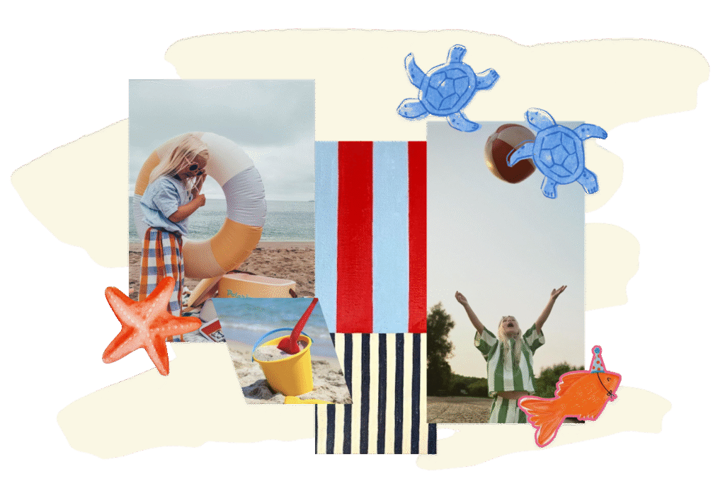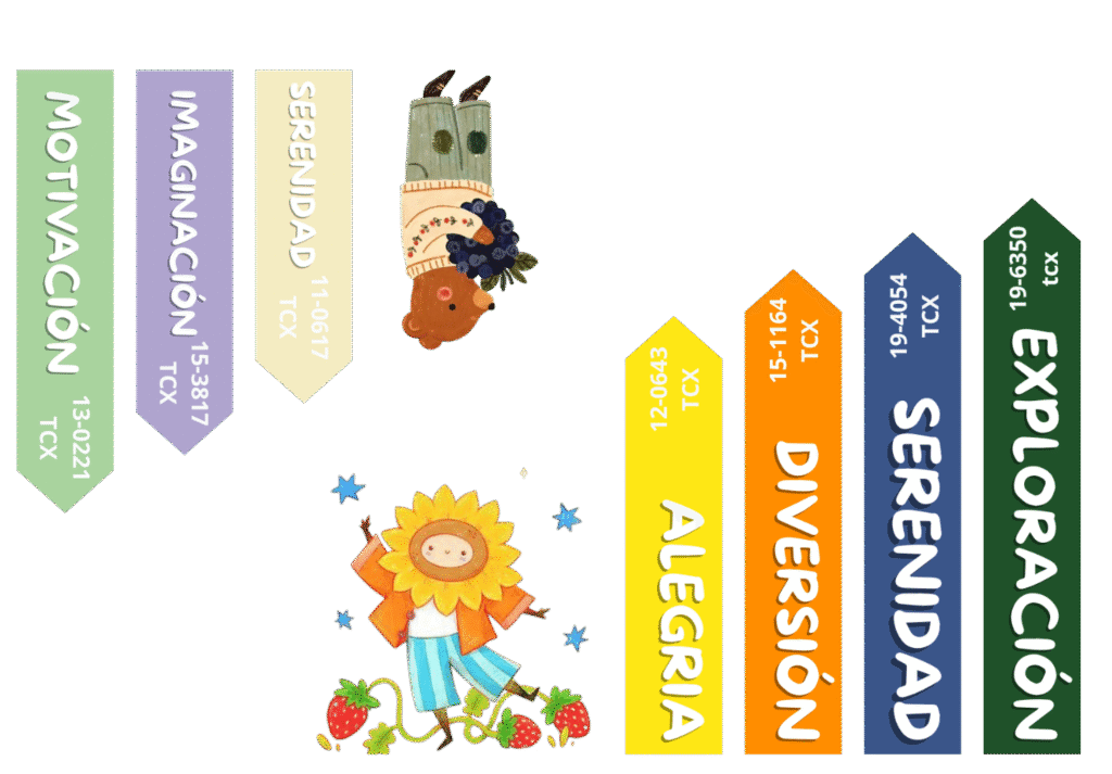La investigación de MIMARE partió del análisis del color como herramienta emocional y expresiva dentro del diseño infantil. Se exploró la psicología del color para comprender cómo los tonos pueden influir en el estado de ánimo, la motivación y el juego durante la infancia. La paleta seleccionada compuesta por matices que representan la alegría, la serenidad, la imaginación, la motivación, la diversión y la exploración, busca estimular los sentidos y acompañar las experiencias del verano.