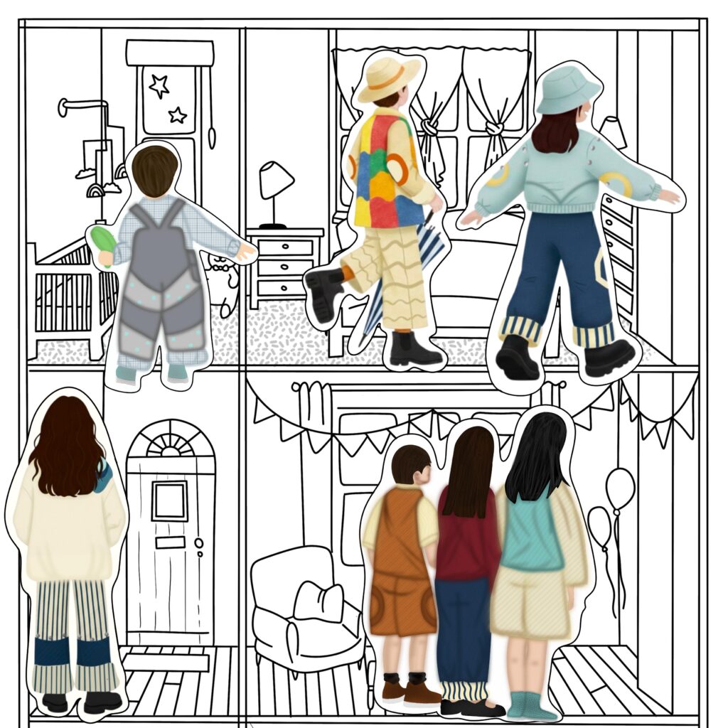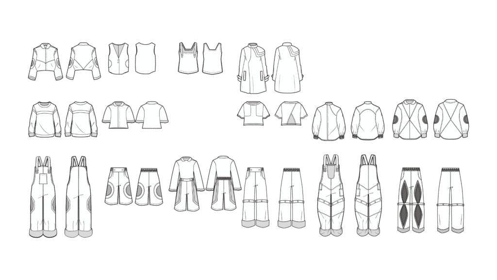 La investigación de MIMUM se centró en comprender las dinámicas actuales de la moda infantil unisex y su relación con el desarrollo de la niñez. Se analizaron referentes pedagógicos y psicológicos que resaltan la importancia del juego, el movimiento y la autonomía en la infancia, así como tendencias contemporáneas en diseño que buscan romper con los estereotipos de género en la ropa infantil. También se revisaron marcas emergentes y propuestas sostenibles que priorizan la comodidad, la adaptabilidad y la durabilidad de las prendas. Este proceso permitió establecer un marco sólido para la creación de una colección que no solo responde a las necesidades funcionales de los niños, sino que también integra un lenguaje estético coherente con valores de inclusión, libertad y creatividad.